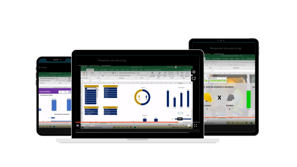 O conteúdo do Sniper do Excel é 100% gravado com material pedagógico completo.